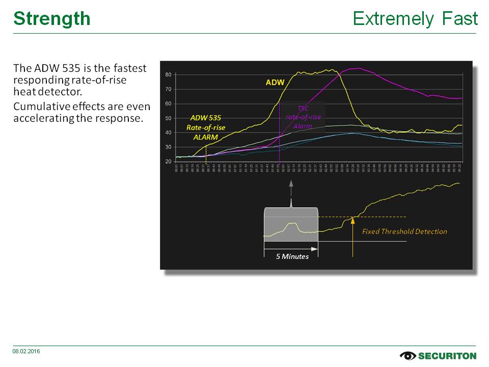 A Securiton tem décadas de experiência na área de detecção de incêndios e sistemas de alarme contra incêndio. O ADW 535 oferece proteção ideal contra alarmes falsos graças ao inteligente algoritmo DHW (Dynamic Heat Watch) e verifica-se constantemente por meio de um gerador de pressão integrado.